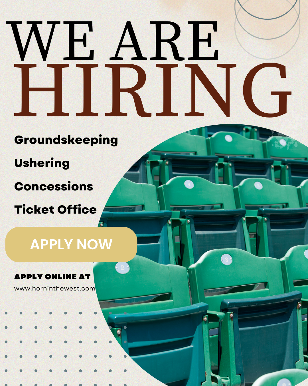 Work for us “Up Top” in groundskeeping, ushering, ticket office, and the concessions stand!